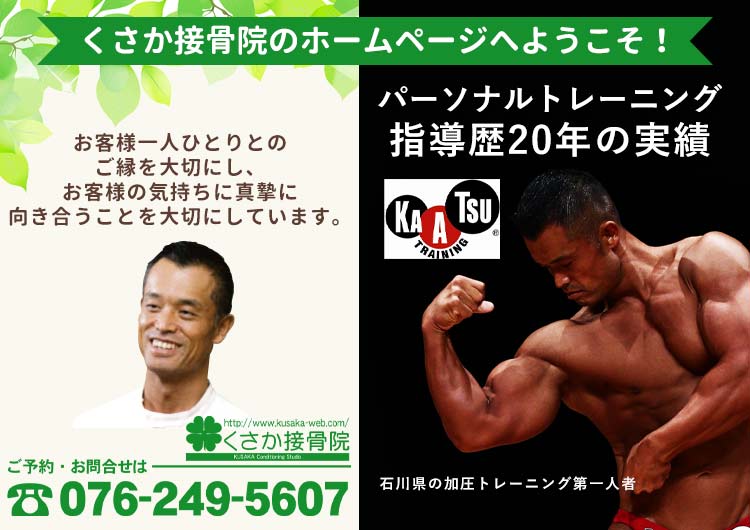 くさか接骨院は石川県で初めて加圧トレーニングを導入した接骨院です。