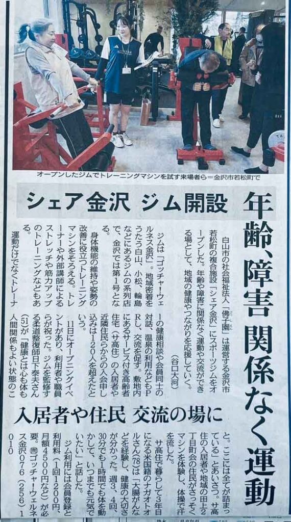 中日新聞に掲載されました。 2026年1月15日 最終更新日時 : 2026年1月15日 kusaka 日下が監修するスポーツジム「ゴッチャ!ウェルネス金沢」が金沢市若松町にオープン!そのオープン記事が2026年1月11日の中日新聞に掲載されました。 ゴッチャ!ウェルネス様のホームページ